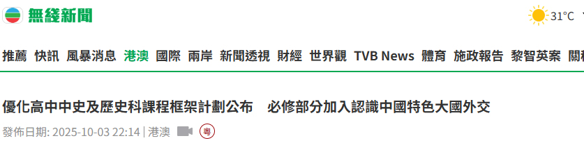 優化高中中史及歷史科課程框架計劃公布 必修部分加入認識中國特色大國外交《 無線新聞》 詳細內容 By admin|2025-10-04T11:27:19+08:002025 年 10 月 4 日|教評資訊|0 條評論 請選擇您想分享此商店的平台! FacebookTwitterRedditLinkedInWhatsAppTelegramTumblrPinterestVkXingEmail: About the Author: admin 相關文章: 高中中西史修訂課程框架 學界:學習整個歷史脈絡 料提高學生興趣《 有線新聞》 高中中西史修訂課程框架 學界:學習整個歷史脈絡 料提高學生興趣《 有線新聞》 優化高中中史及歷史科課程框架 教評會:助吸引學生選修 《 星島頭條》 優化高中中史及歷史科課程框架 教評會:助吸引學生選修 《 星島頭條》 就特首施政報告(教育部分)教育評議會之意見回應 就特首施政報告(教育部分)教育評議會之意見回應 教育評議會、國史教育中心(香港)- 就全港學校師生於校內觀看九三閱兵直播的聯合建議 《星島頭條》 教育評議會、國史教育中心(香港)- 就全港學校師生於校內觀看九三閱兵直播的聯合建議 《星島頭條》 留言 取消回覆Comment Save my name, email, and website in this browser for the next time I comment.